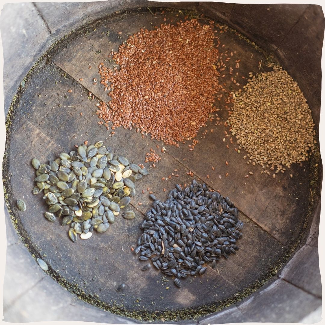 En ja, ook voor kippen mag er af en toe gekokkereld worden. Zeker kippen in een ren hebben behoefte aan extra variatie. Een handje zonnepitten, wat hennepzaad of pompoenpitten wordt vaak enthousiast ontvangen. Elk zaad en elke pit brengt weer andere voedingsstoffen. Mineralen en spoorelementen kun je aanvullen met bijvoorbeeld zeewier of veendrenk, eventueel opgelost in water.